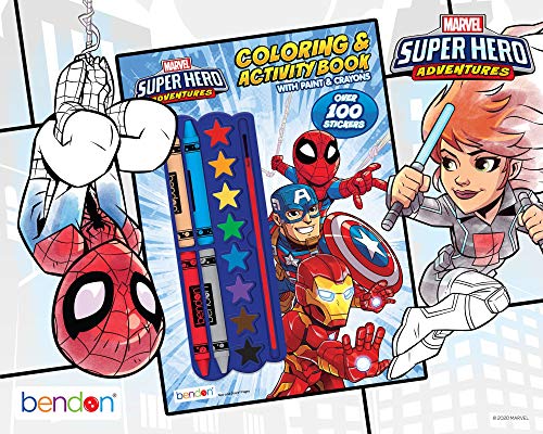 Join your favorite Marvel characters on an all-new coloring adventure with Bendon’s Marvel Coloring and Activity Book with Paints and Crayons! This 128-page coloring book is chock-full of activities, games, and puzzles plus 4 crayons, 8 paint pods and more than 30 awesome stickers! “Tear and Share” pages make showcasing your little artist’s masterpieces a snap with original artwork featuring some of your child’s favorite characters! This is an officially licensed Marvel product, accept no substitutions! Ideal for ages 3 and up.
