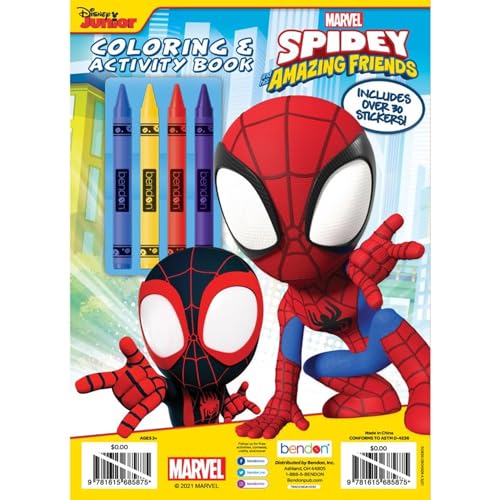 Spidey and Friends Coloring Book | Spidey and Friends Coloring & Activity Book with 4 Crayons | Includes 30 Stickers | Officially Licensed