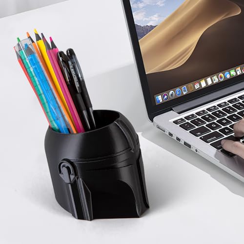 Cool Helmet Pen Holder, Armor Figurine Pencil Holder for Office Desk Decor, 3D Printed, Black, Durable and Fun Gift Idea