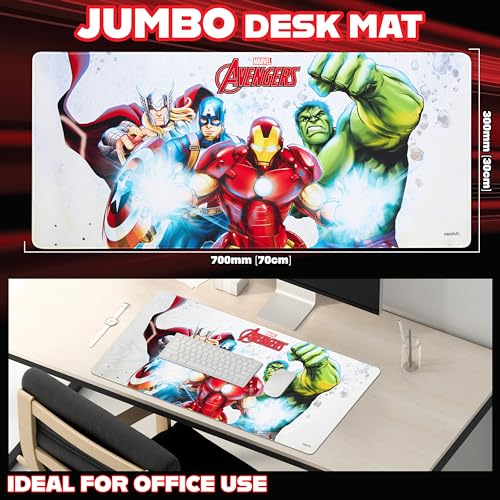 Marvel Avengers Desk Mat Large Mouse Mat 31.2 x 13.9” Desk Protector Mat PC Laptop Keyboard Gaming & Office Supplies Non Slip – Avengers Gifts for Men (White Avengers)