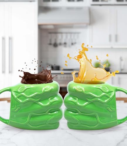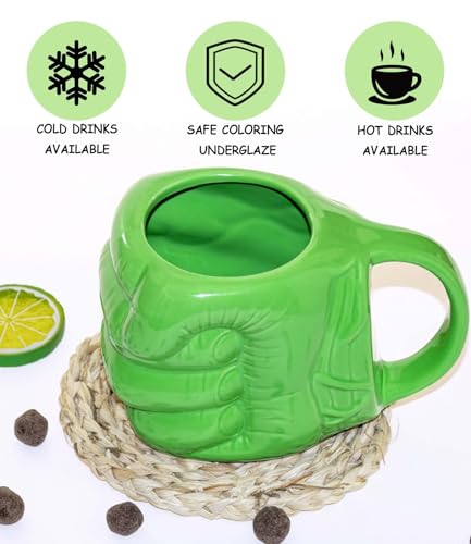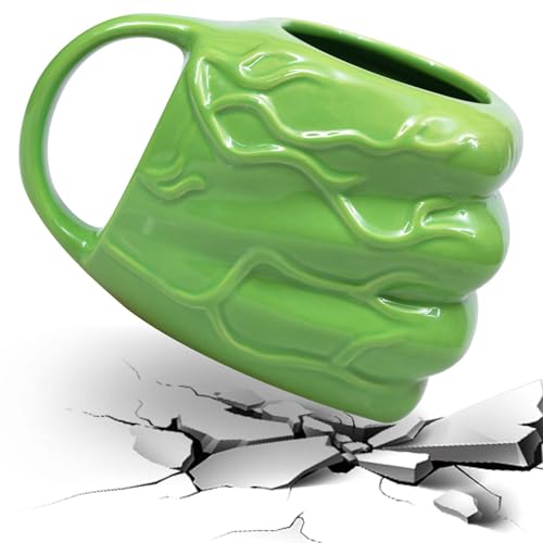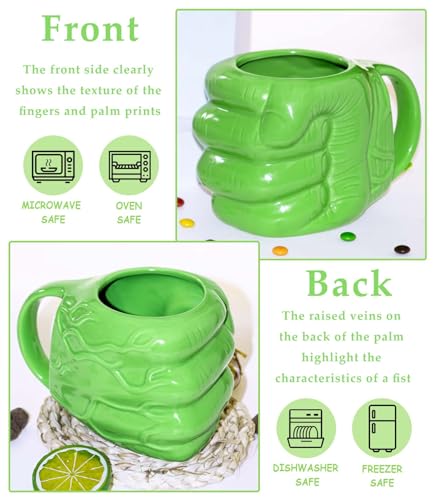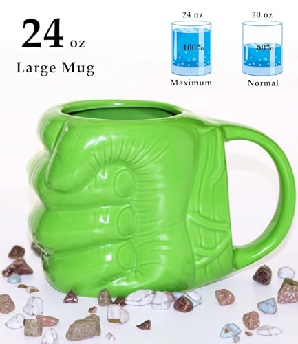 Danrun Coffee Mugs for Men Superhero Gifts, 24 oz Funny Fist Cup Extra Large – Gifts for Brother, Cool Anime Coffee Mug Flat Bottom with Handle, Green Desk Decor – Office Decor & Novelty Coffee Mugs