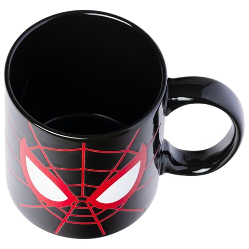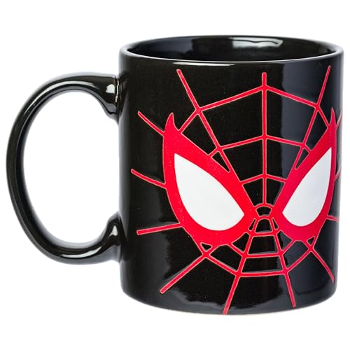 STRIKING DESIGN & SIZE: 20-ounce ceramic mug featuring a bold wax resist-style design of Miles Morales’ masked face in vivid red and black; built for daily superhero use
