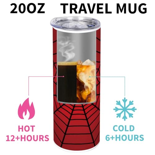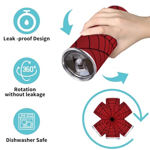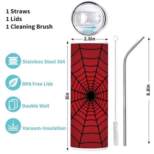 Spiders Red Web 20oz Tumbler Insulated Water Bottle with Sip and Straw Lid Stainless Steel Water Bottles Reusable Travel Coffee Cups