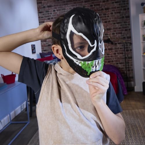 GLOW-IN-THE-DARK MASK: Kids can accessorize any Marvel costume and pretend to have alien symbiote powers with this Venom mask, featuring glow-in-the-dark accents around the eyes and teeth