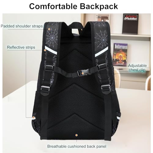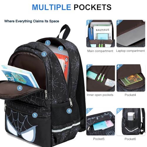 Octsky Kids Backpack for School Boys Backpack with Lunch Box Elementary Bookbag, Spider Black 3pcs